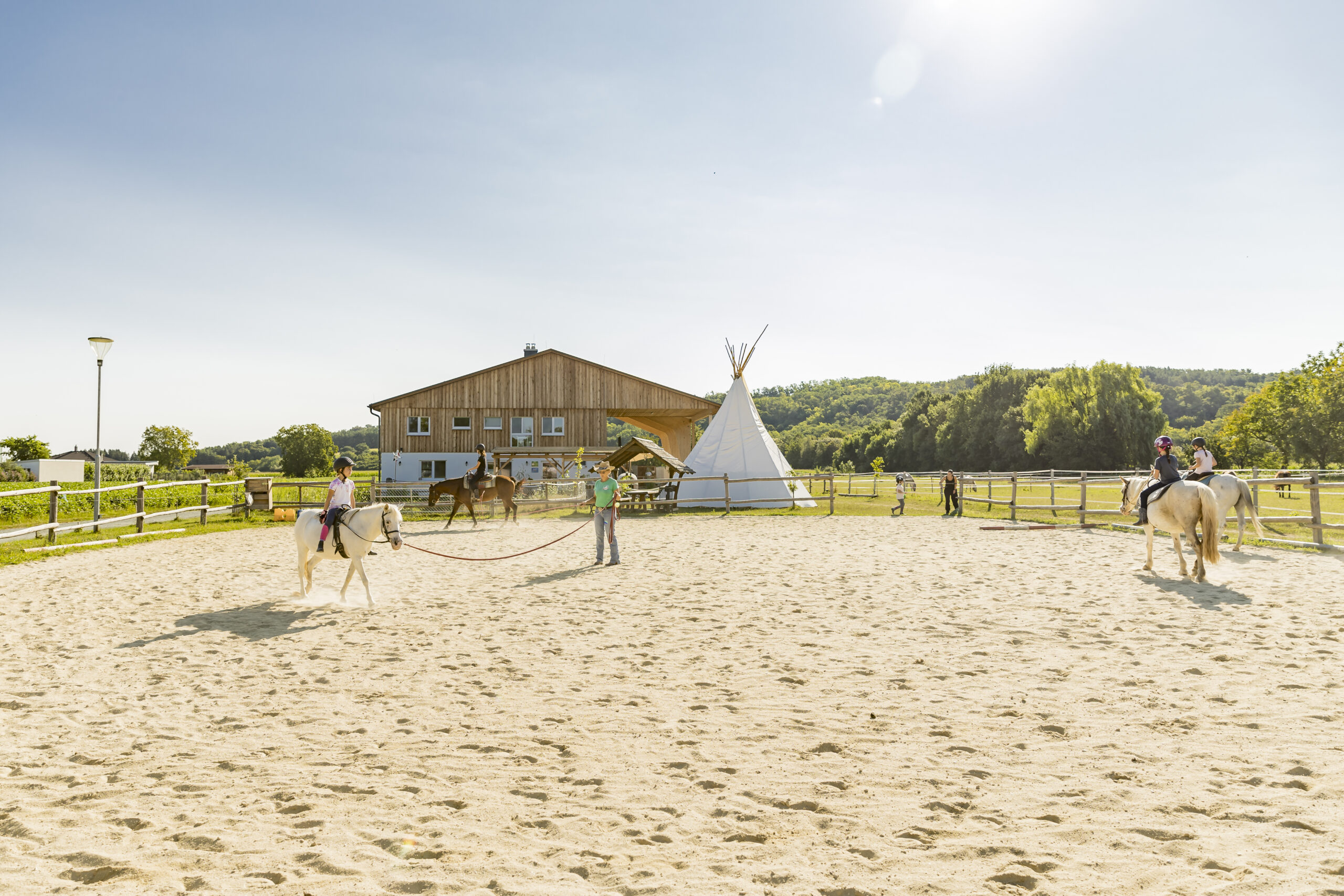 Die Family Ranch liegt inmitten der Natur und bietet Pferdefreund:innen aller Altersgruppen hautnahe Pferdeerlebnisse, unabhängig von ihrer Erfahrung. Unser Familienbetrieb widmet sich dem Lebewesen Pferd. Verschiedene Rassen leben auf grünen Weiden zusammen und laden zum Staunen und Erleben ein. Ein achtsamer Umgang steht im Mittelpunkt unserer Arbeit. Gäste können beim Beobachten, Versorgen und Reiten der sanftmütigen Tiere zur Ruhe kommen und neue Kraft schöpfen. Darüber hinaus bietet die Family Ranch komfortable Apartments für Urlauber, einen Seminarraum sowie die Möglichkeit, Anlagen für individuelle Pferdeangebote zu mieten.